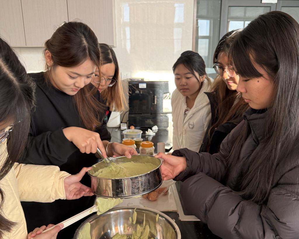 11月27日,星糖焙艺社20余名同学在郭营营老师指导下于食药学院烘焙实验室以“开心果草莓酱双层巴斯克蛋糕”为载体,开启了一场关于“精准”与“美感”的实践实验,以专业器具为媒介,在奶油、果香与坚果的交融中,探索甜品的味觉秩序。