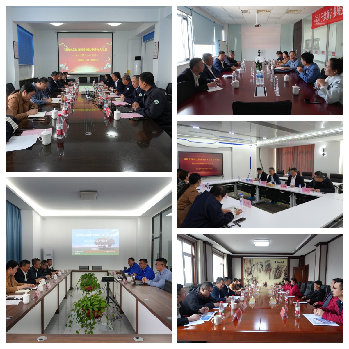 4月14日,由安丘市人力资源和社会保障局牵头、我校协同组织的访企拓岗促就业专项行动顺利开展。安丘市人力资源和社会保障局党组书记、局长张景宝,安丘市人力资源和社会保障局党组成员、市公共就业和人才服务中心主任朱金华,副主任李倩,学校党委书记肖明胜,副校长田敬成及相关部门负责人共同组成走访团,先后深入汶瑞机械(山东)有限公司、今麦郎饮品(潍坊)有限公司、山东亚华生物科技有限公司、中科滕森(山东)智能装备有限公司、潍坊市贝特工程机械有限公司等5家重点企业,通过实地调研与座谈交流相结合的形式,深化政校企协同合作,持续拓宽毕业生就业渠道,推动产教融合提质增效。
